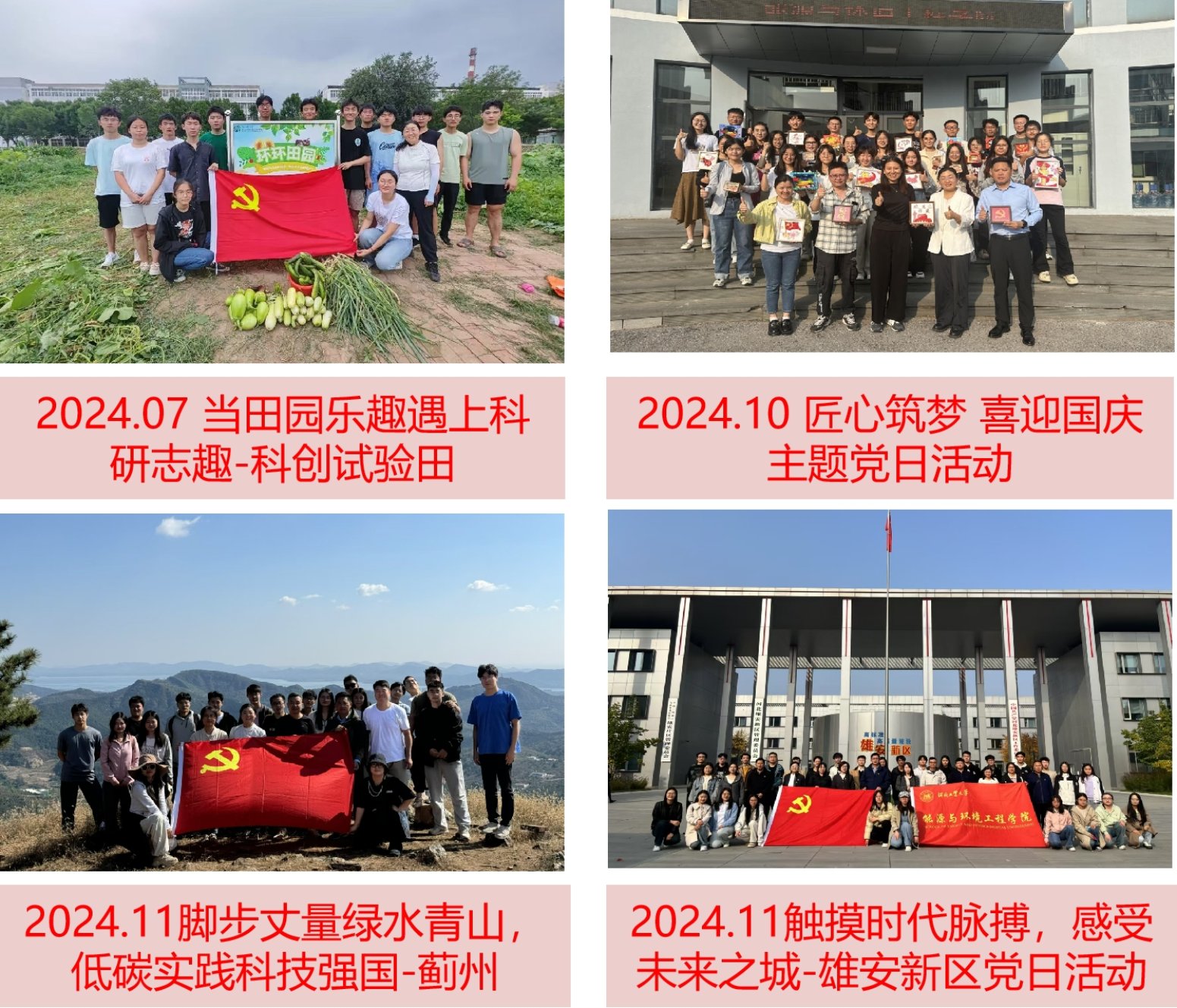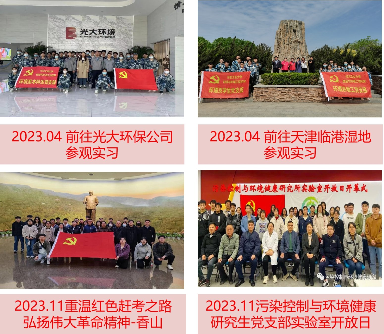 环境系教师党支部入选全国高校“双带头人”教师党支部书记“强国行”专项行动团队、获批河北省“双带头人”教师党支部书记工作室并通过验收、获批河北省党建工作样板支部培育单位,获批校级“双带头人”教师党支部书记工作室、校级样板党支部、校级优秀基层党组织。支部书记曾荣获青教赛全国三等奖和天津市第一名、天津市五一劳动奖章、天津市教育系统优秀共产党员、河北省“冀青之星”、河北省课程思政教学名师、天津市新时代“百姓学习之星”等荣誉称号。支部依托1个本科专业、1个博士学位授权点、4个硕士学位授权点、1个博士后流动站、2个基层研究所而建设,有国家级一流课程1门、省级一流或课程思政示范课程5门、省级科研平台5个、省级基层教学组织5个、省级课程思政教学团队4个,已形成党建、教学、科研、管理、服务协同建设的特色。