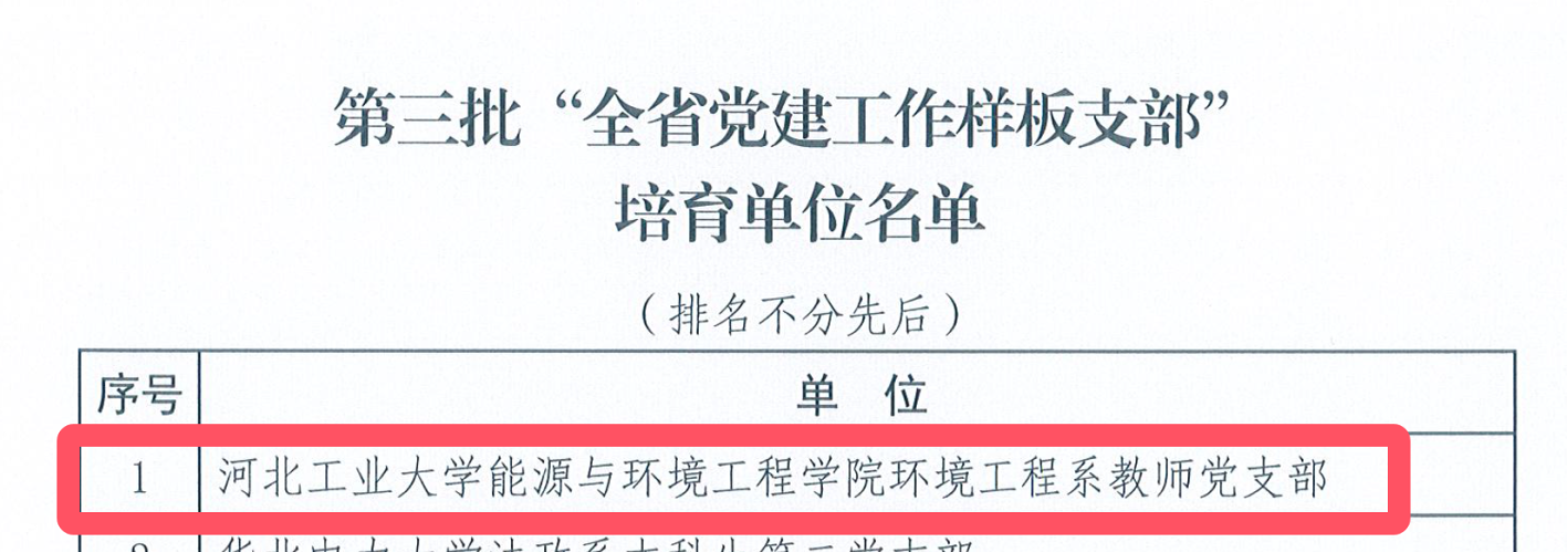 经各高校推荐上报、专家集中评审、结果公示,永利集团3044官网欢迎您环境工程系教师党支部获批第三批“全省党建工作样板支部”培育单位。