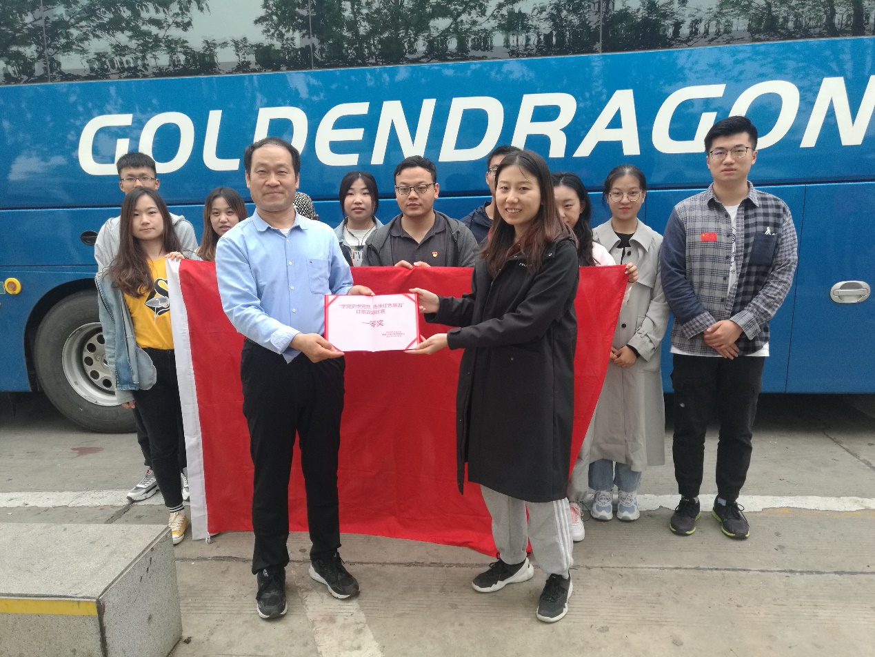 在赴往西柏坡途中开展了红歌竞唱活动。一首红歌,一段历史。一首红歌,一面旗帜。红歌是中国革命历史真实的写照,它是激励我们继续奋斗的号角!红歌是一种呼唤,呼唤红色精神。这种精神经过历史的沉淀早已根植人心。教工党支部和学生代表团分别释放激情,唱响红色经典。《团结就是力量》《我爱你中国》《我们走在大路上》……大家唱响一首首耳熟能详的红色经典曲目。大家歌颂着民族自强不息的伟大精神、阔步向前的豪迈气概,唱出了对党、对祖国、对社会主义的浓厚深情和热情讴歌,歌声催人奋进,气势振奋人心。经过角逐,学生党支部获得了一等奖,环境建环党支部获得二等奖,商植桐书记为他们颁奖。