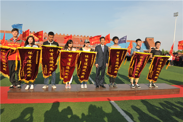 校纪委书记李延涛为学生体育道德风尚奖获奖单位颁奖