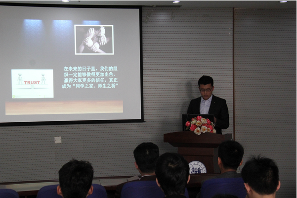 会上,首先由本届团委副书记亢佳明同学就本届团委的工作做了总结报告,也对这一年辛勤工作的部长们表示了感谢。