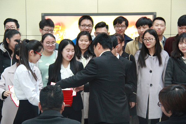 议程第二项由第15届团委副书记兼学生会主席袁路子作为代表发言,对一年中各项工作进行详细总结,袁路子同学的讲话饱含了对团学工作的热爱和不舍,内容丰富,条理清晰,对工作中的成绩进行了整理,将优良的工作传统和经验分享传授给新一届团学干部。学校办公室综合行政科科长李天生老师为上一届优秀干部颁发证书,王敏达老师为新一任骨干颁发聘书。