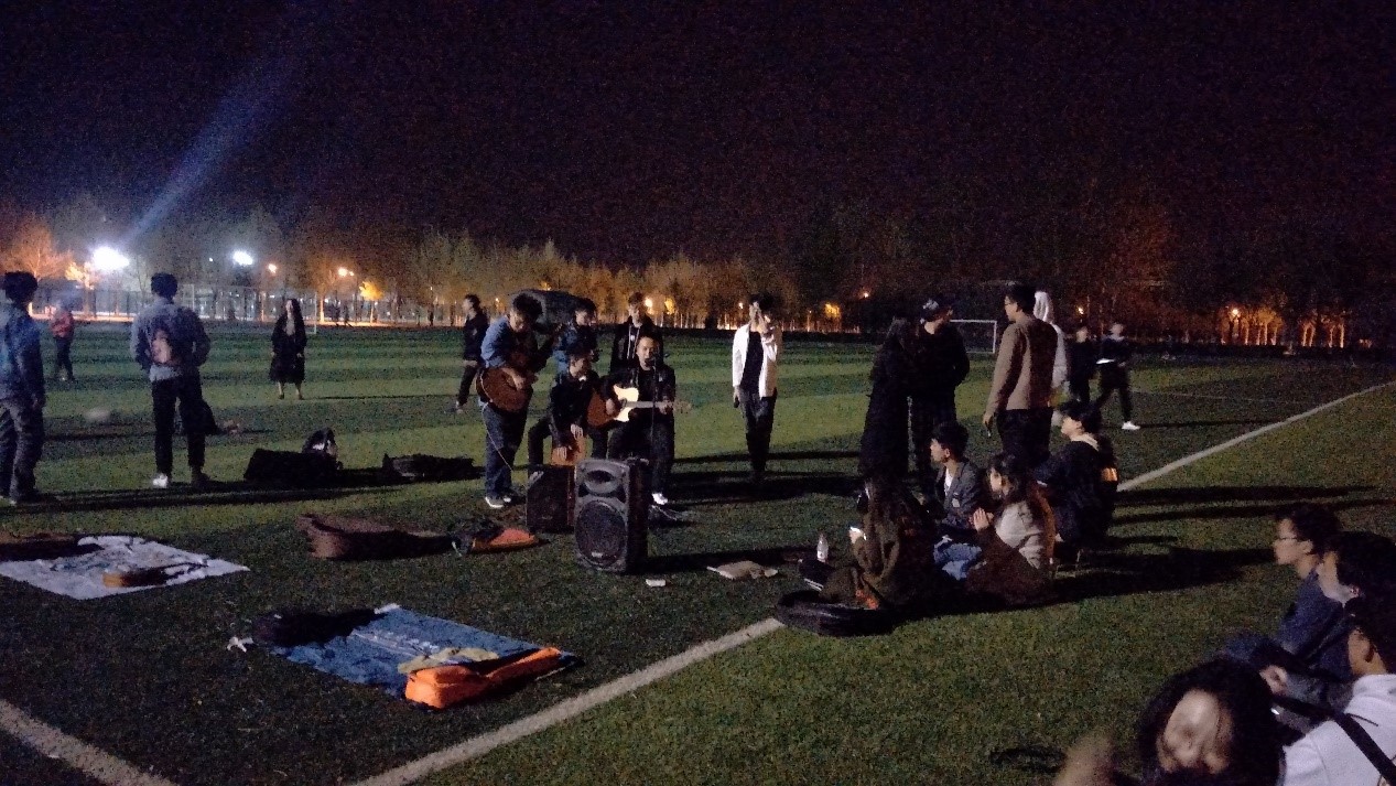 系列活动五:4月14号晚上七点,BBOX社团与尤克里里社团,吉他社团在西区操场开展了不插电弹唱夜活动。活动由尤克里里社社长主持,先由其社长唱歌开场,场面也是相当活跃,接下来由吉他社社长自弹自唱演奏,完毕后选台下的观众上来唱歌,最后由BBOX社团成员进行个人和合作表演。