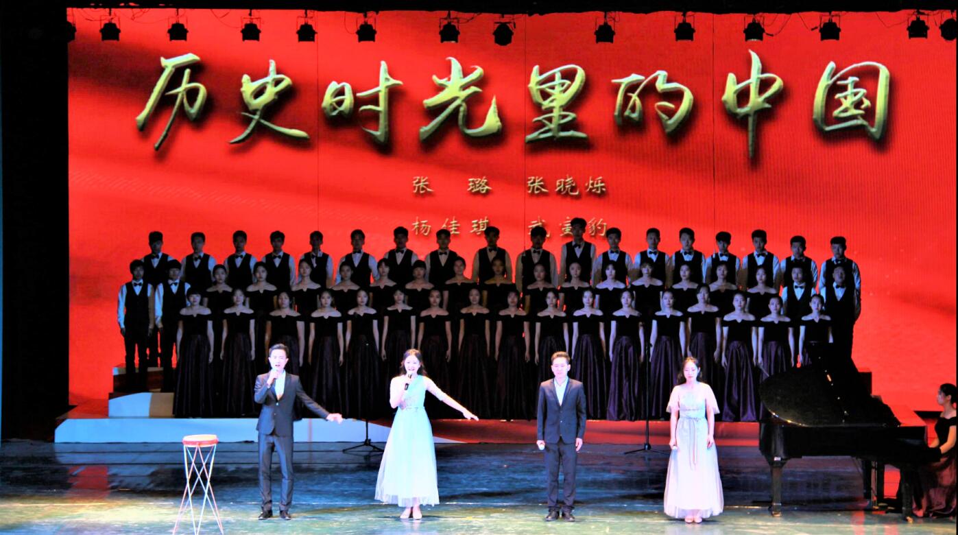 伴随着激越高昂的音乐,由张璐、杨佳琪、张晓烁、武寅豹四位同学组成的朗诵队用铿锵有力的演讲带领我们走进了历史时光里的中国。一词,一句,无不抑扬顿挫,用一身正气传递着中华民族的奋进与崛起。