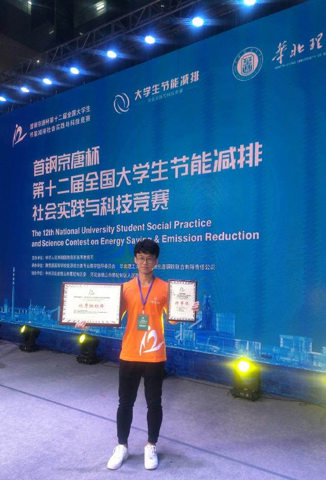 作为学生,学习永远应该摆在第一位。但作为新时代的大学生,更应该学会理论联系实际,将自己的所学运用到生产实践中。他在学习之余参与到老师的课题研究中,并多次参加各类科技竞赛,获得全国大学生节能减排特大赛等奖、triz理论创新方法大赛全国三等奖、河北省大创年会特等奖等荣誉。学海永无尽头,奋斗永不止步。