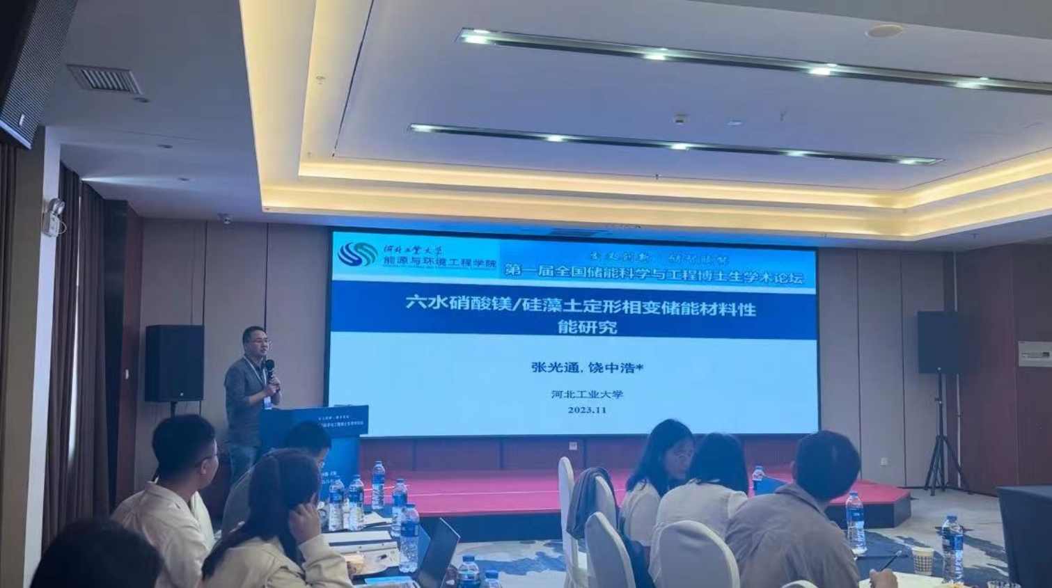 博士后乔羽作了题为“废旧锂离子电池负极石墨纳米片制备研究”的报告。博士生张光通同学进行了主题为“六水硝酸镁/硅藻土定形相变储能材料性能研究”的报告。