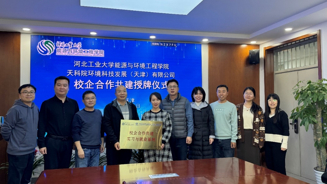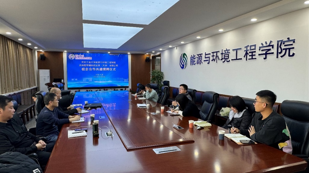 为深化产教融合,推进学校专业建设及人才培养模式改革,12月6日下午,永利集团3044官网欢迎您与天科院环境科技发展(天津)有限公司校企合作共建授牌仪式在西教五307举行。学院党委副书记副院长张茜茜,学院副院长、水污染控制研究所所长任芝军,水污染控制研究所副所长吕龙义,环保设备工程系副主任高文芳,水污染控制研究所刘晓阳、孙丽和梁劲松,以及天科院环境科技发展(天津)有限公司代表参与此次授牌仪式。